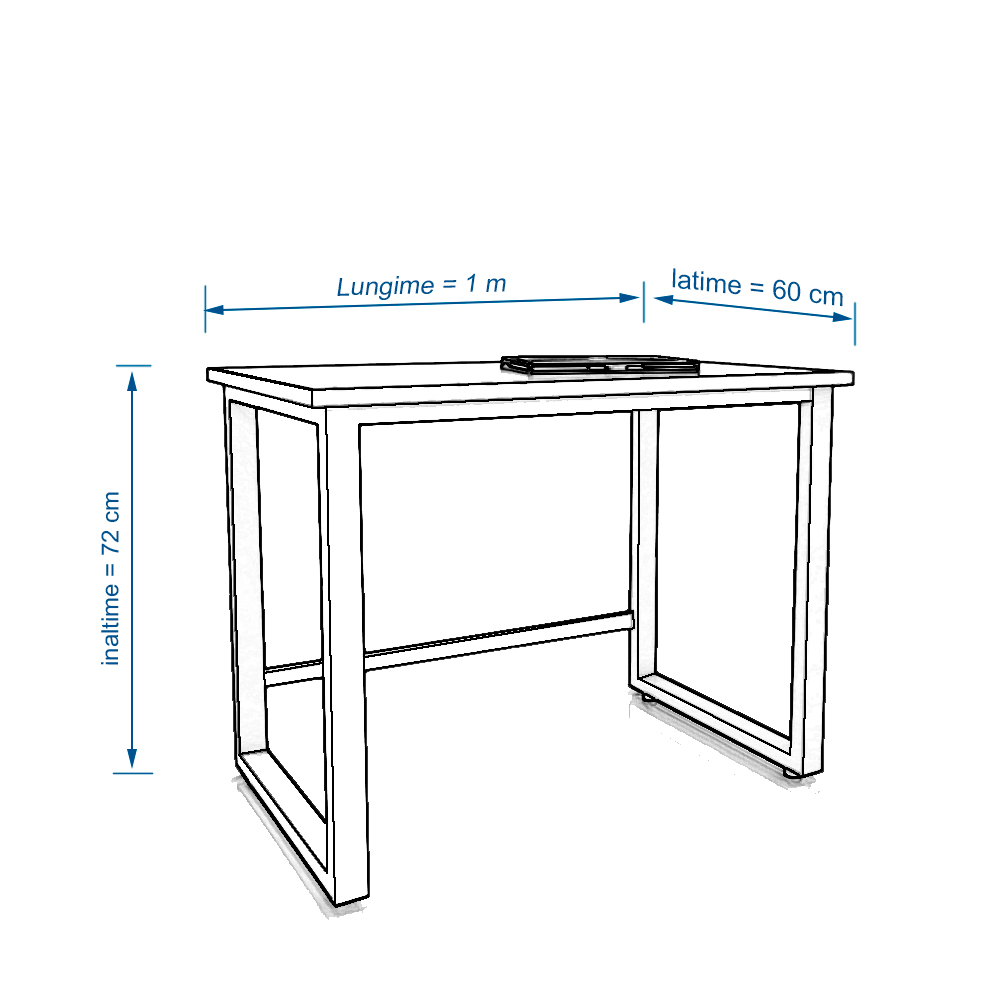 Setul contine instructiuni de asamblare, elemente pentru structura metalica, suruburi si blat.
