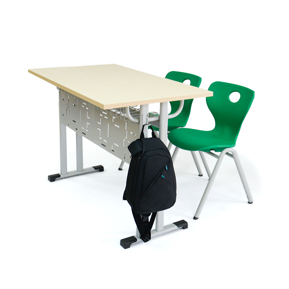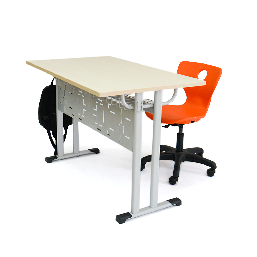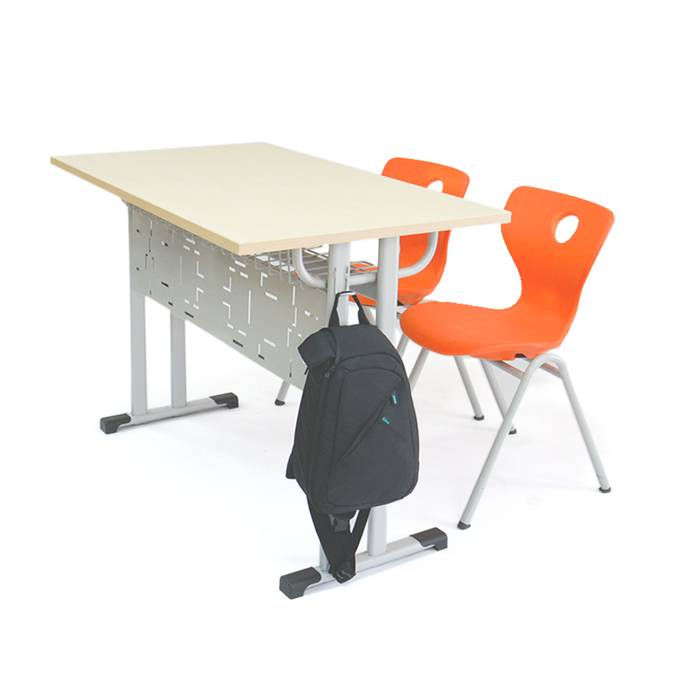 Prevazuta cu 2 polite suport pentru carti, montabile sub blat, realizate din plasa de sarma cu ochiuri mari, curbate la cald, vopsite in camp electrostatic si 2 carlige pentru geanta, cate unul in fiecare laterala.