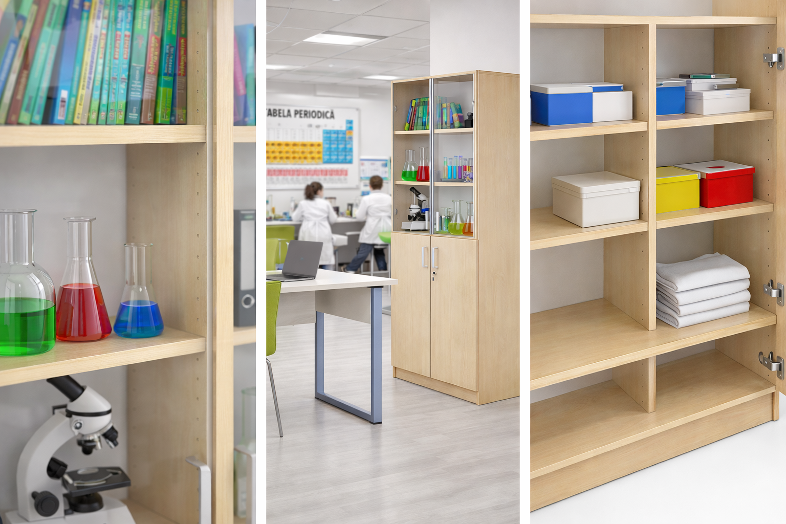Prin combinația dintre spațiu de depozitare generos, accesibilitate și protecție pentru materiale, dulapul vitrină reprezintă o alegere ideală pentru instituțiile de învățământ moderne.