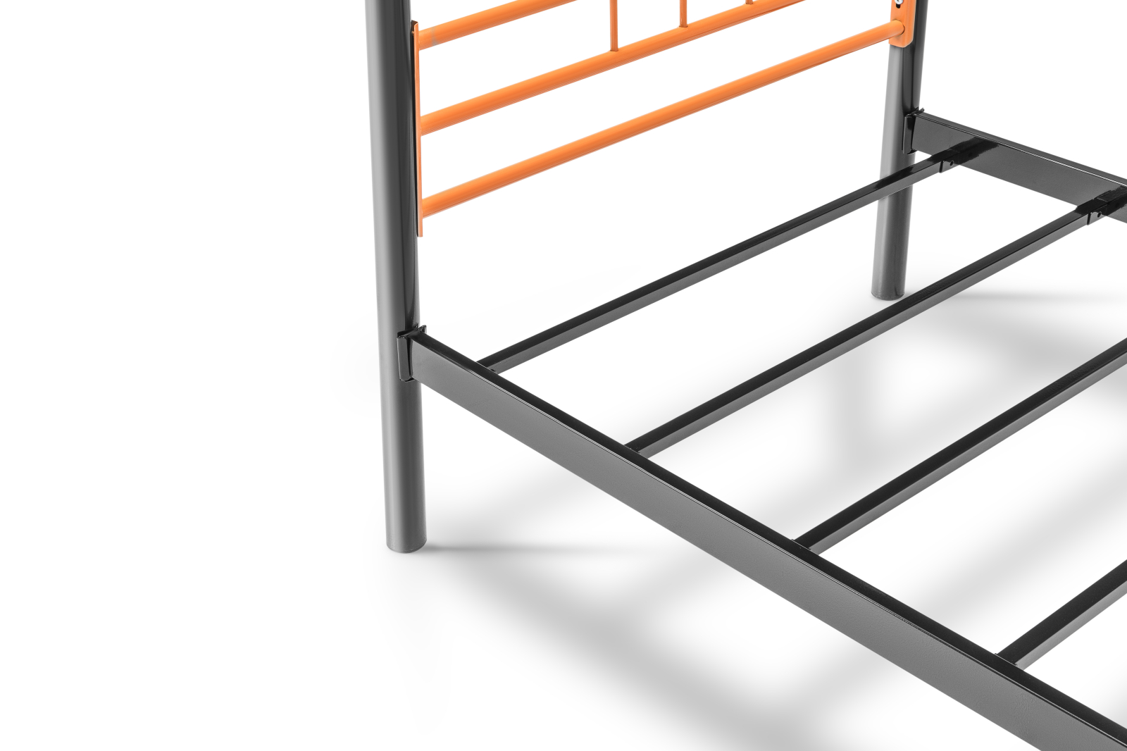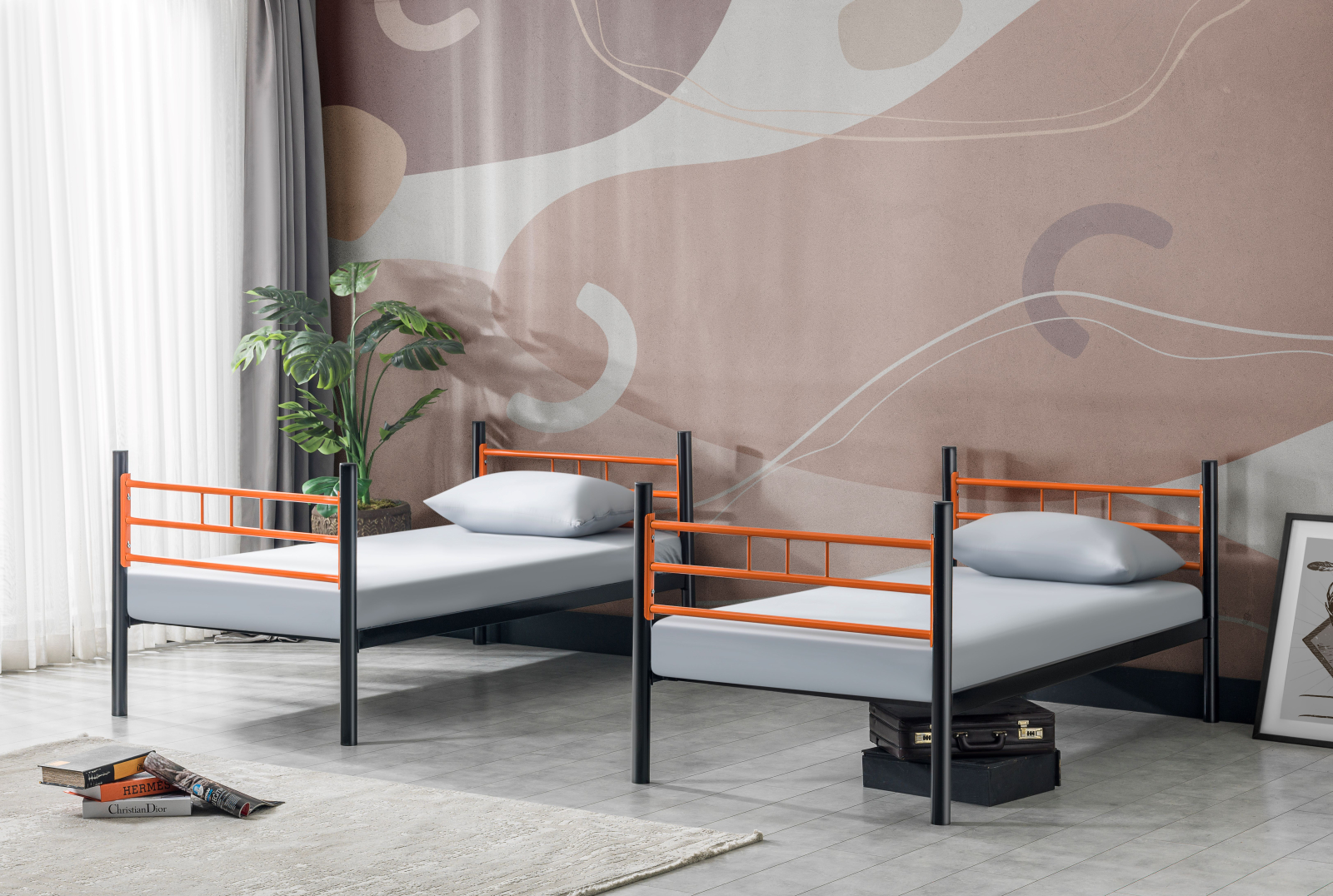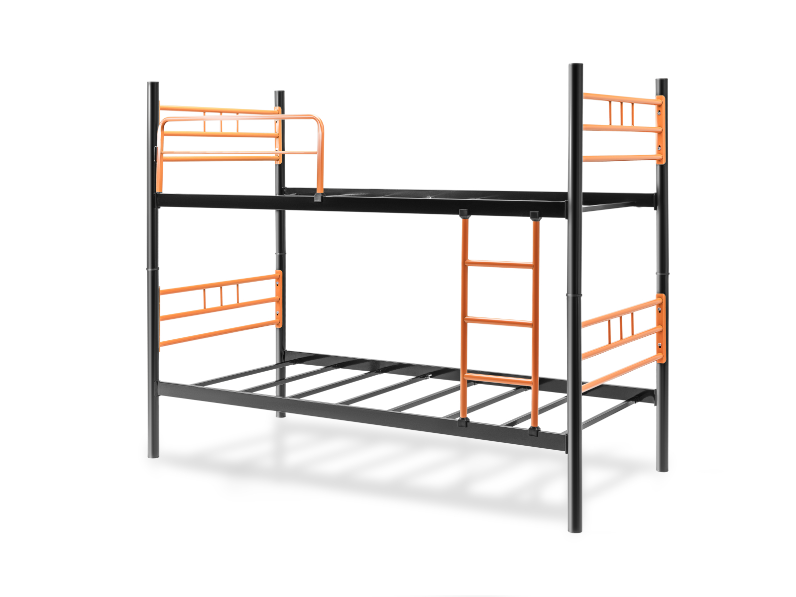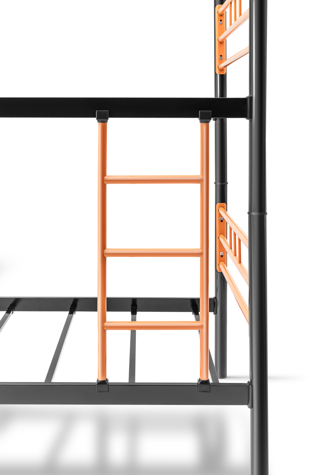 Optimizat pentru economisirea spațiului, patul suprapus DW90 combină durabilitatea metalului cu un design industrial vibrant în nuanțe de negru și portocaliu. Este soluția ideală pentru camere de copii, adolescenți sau spații de cazare moderne, oferind siguranță deplină prin garda de protecție superioară și scara integrată robustă.